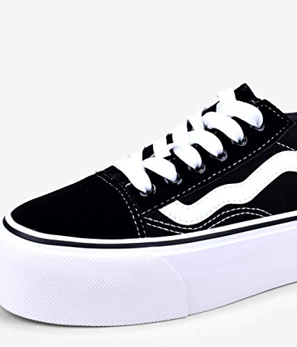 Modelisa - Zapatilla con Plataforma con Cordón para Mujer (Negro/Lona, Numeric_38)