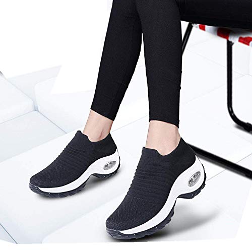 Zapatillas Deportivas de Mujer Zapatos Running Fitness Gym Outdoor Sneaker Casual Mesh Transpirable Comodas Calzado Negro-Blanca Talla 40