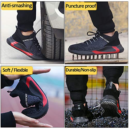 UCAYALI Zapatos de Seguridad con Punta de Acero para Hombre Zapatillas de Trabajo Puntera Reforzada Calzado de Protección Industria Construcción - Cómodos Ligeros y Antideslizantes(Negro, 47)