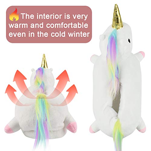 UMIPUBO Zapatillas Unicornio Mujer Suave Zapatos Animales Felpa Calentar Invierno de Cálido Pantuflas Animados Dibujos (L=EU 37-43, Blanco)