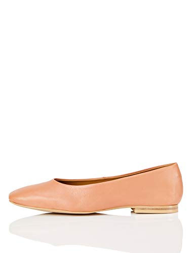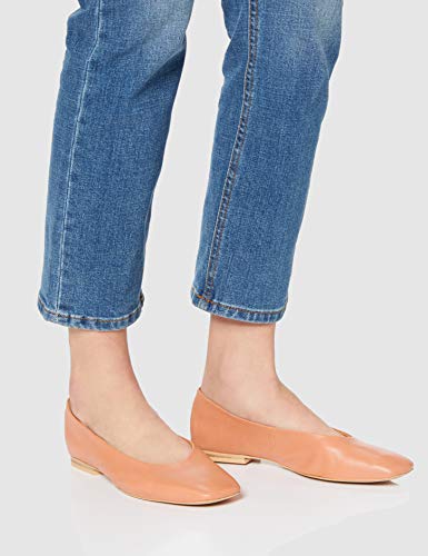 FIND Square Toe Soft Leather Bailarinas, Marrón (Azalea Peach), 41 EU