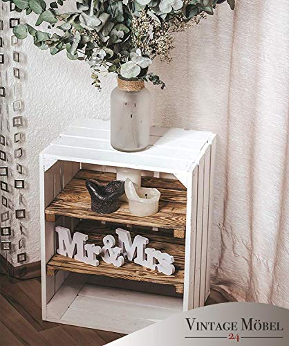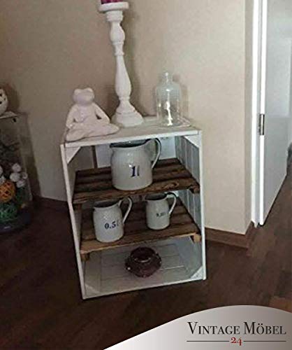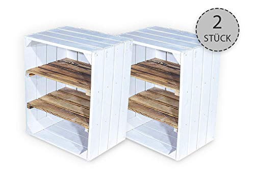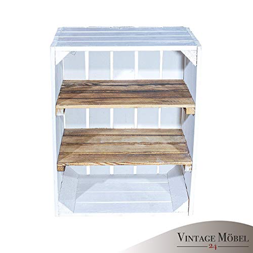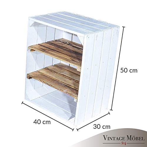 Vintage -Möbel24 - Juego de 2 cajas de fruta con tabla intermedia flameada horizontal – Cajas de madera como zapatero – Shabby Chic – 50 x 30 x 40 cm