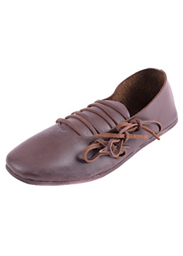 Zapatos medievales de piel, color marrón oscuro, medieval – LARP, zapatos vikingos, tallas 36 – 46 (46)