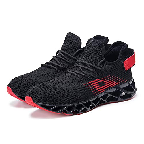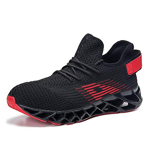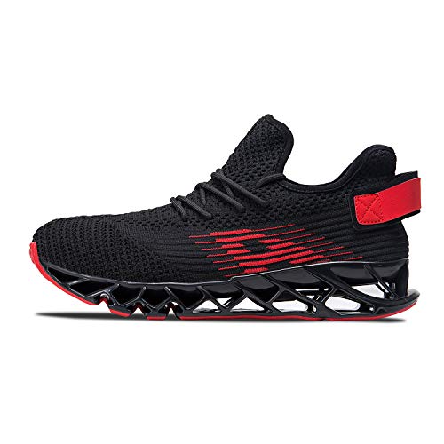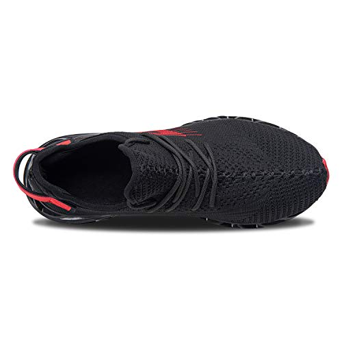 Zapatillas Deporte Hombre Zapatos para Correr Athletic Cordones Hombre Aire Libre y Deporte Transpirables Casual Zapatos Gimnasio Correr Sneakers(da.Negro Rojo,45 EU)