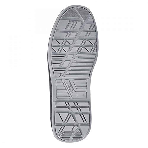 - Parte superior de cuero liso en una zapatilla de trabajo informal antideslizante con detalles de costuras y plantilla Memory Foam.