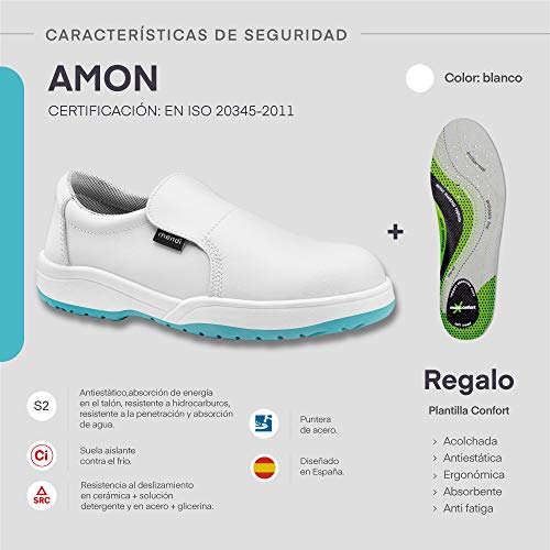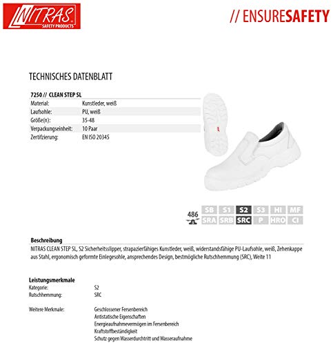 Zapatillas de Trabajo Nitras 7250 Clean Step I - Zapatilla de Seguridad S2 para Hombres y Mujeres - Zapatos Resistentes al Agua con Punta de Acero - Blanco, Tamaño 42