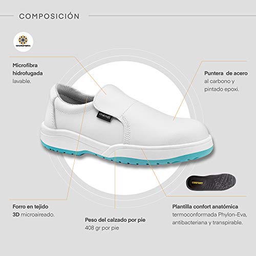 Milan-SCL Liso Color Blanco Talla 39, Zapato de Trabajo Unisex Certificado CE EN ISO 20347 Marca DIAN