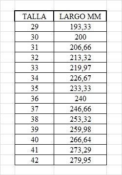 - desde la talla 22 a 42