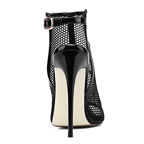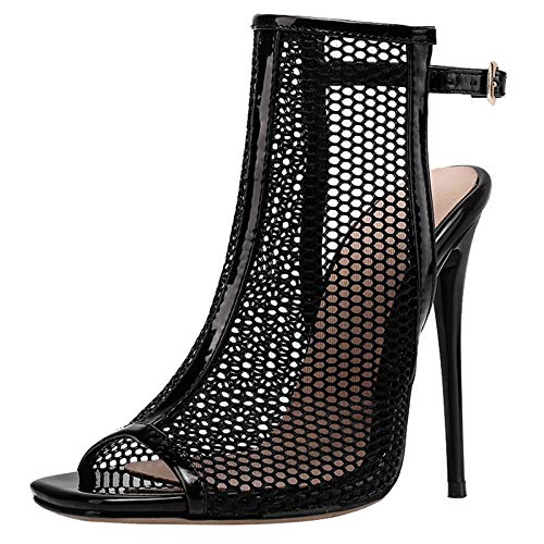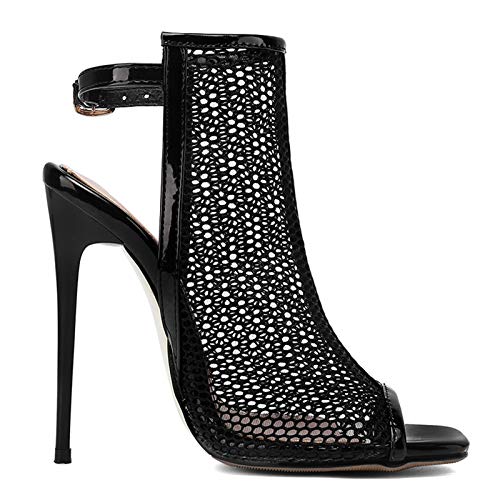 HarryHyar Mujer Elegante Tacón de Aguja Sandalias Booties Talon Abierto Peep Toe Zapatos Malla High Heels Fiesta Sandalias Black Size 43 Asian