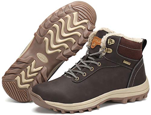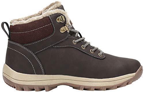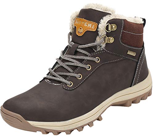Mishansha Hombre Mujer Botas de Nieve Invierno Botines Senderismo Impermeables Deporte Trekking Zapatos Fur Forro Aire Libre Boots,Marrón 43 EU