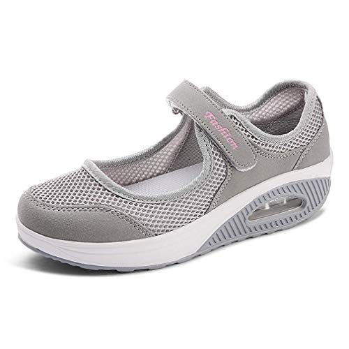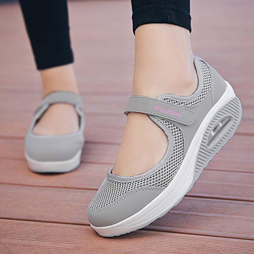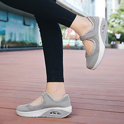 Sandalias para Mujer Malla Merceditas Plataforma Ligero Zapatillas Sneaker Mary Jane Casual Zapatos de Deporte Mocasines Negros Verano A-Gris-2 EU41