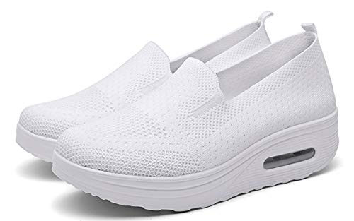 Zapatos Deporte Mujer Zapatillas Deportivas Casual para Mujer Running Caminar Fitness Atlético Transpirable Ligero Sneakers, Blanco, 37 EU