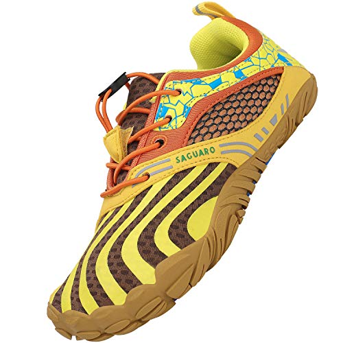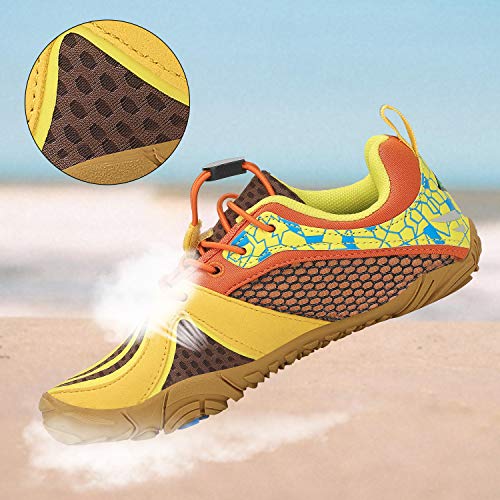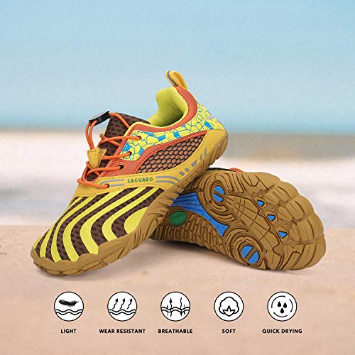 SAGUARO Antideslizante Zapatos de Agua para Niña con Suela Gruesa Secado Rápido Barefoot Zapatos de Agua Deportes Acuáticos para Niño Natación Calzado, Amarillo 35