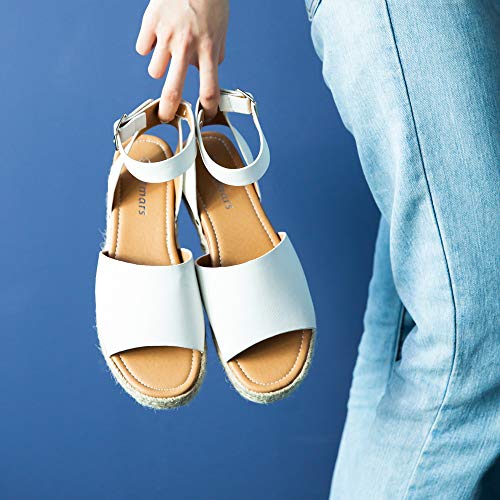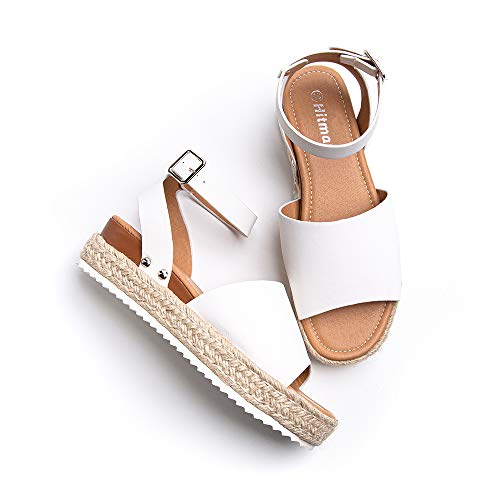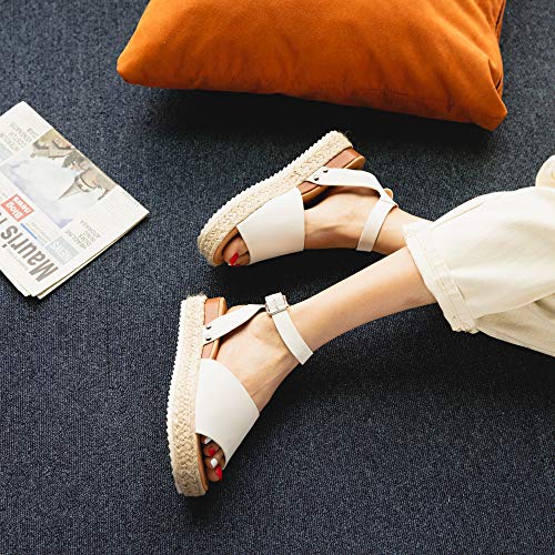 Sandalias Mujer Alpargatas Plataformas Romano Cuña Hebilla Gladiador Zapatos Verano Playa Punta Abierta Tacon 5.6cm Correa de Tobillo 1-Blanco EU37
