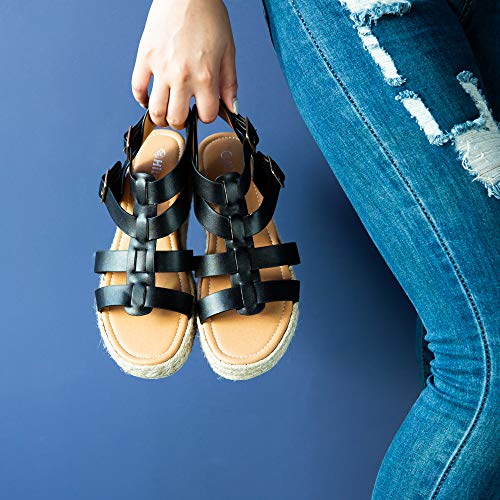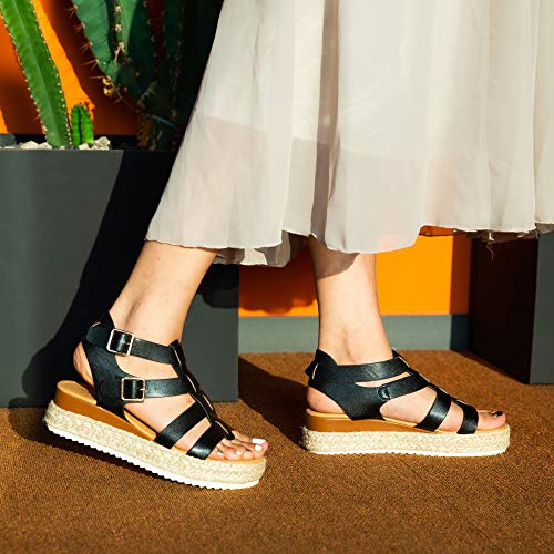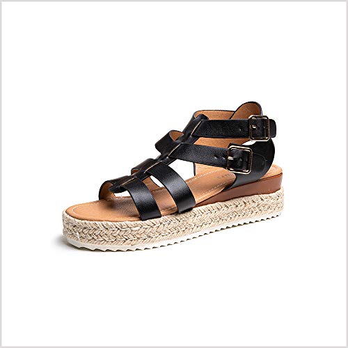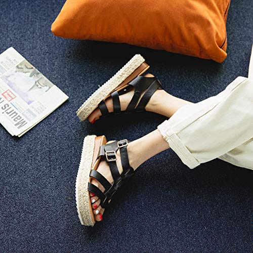 Sandalias Mujer Alpargatas Plataformas Romano Cuña Hebilla Gladiador Zapatos Verano Playa Punta Abierta Tacon 5.7cm Correa de Tobillo 5-Negro EU42