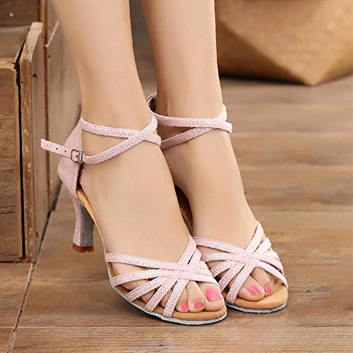 JINGXINSTORE De Las Mujeres latín Danza Zapatos Estándar Salsa Salón de Baile Zapatos-Rosado,35 EU