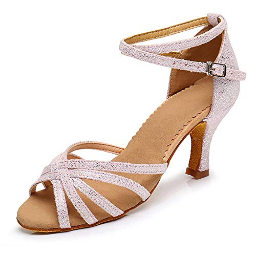YKXLM Mujeres & Niñas Satén Latino Salsa Tango Boda Salón de Baile Zapatos de Baile de Rendimiento,ESYCL013-6,Rosa,EU 36.5
