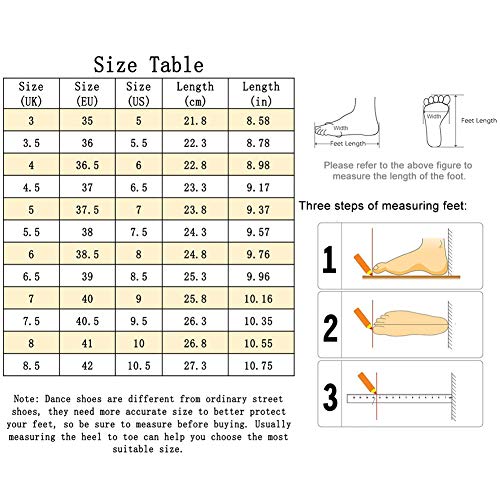 - Los zapatos son adecuados para salsa, baile latino, tango, baile de vals,Samba,ChaCha,fiesta de baile social danza.solo para bailes de interior!