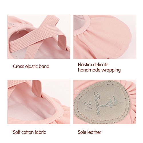 Zapatillas de Danza Cuero Zapatos de Ballet y Gimnasia Baile para Niña y Mujer Rosa 29