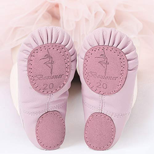 Zapatillas de Danza Cuero Zapatos Media Punta de Ballet y Gimnasia para Niña y Mujer Rosa 20