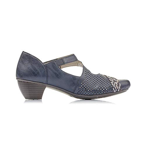 Rieker Mujer Zapatos de tacón 41794, señora Zapatos de tacón con Correa de sujeción,Mary-Jane,cómoda,Zapatos Cerrados,Plana,Pazifik,39 EU / 6 UK