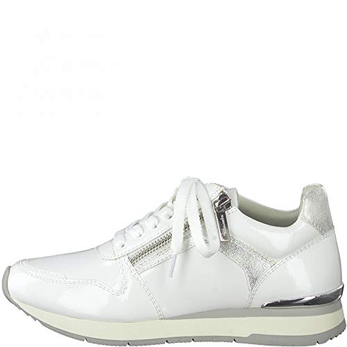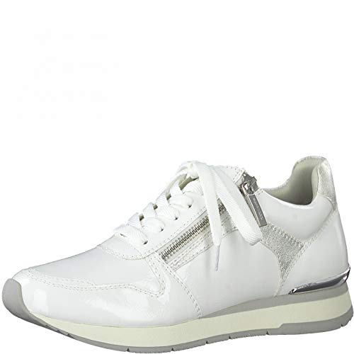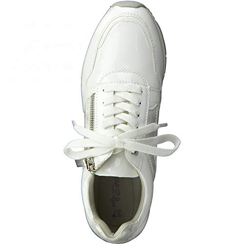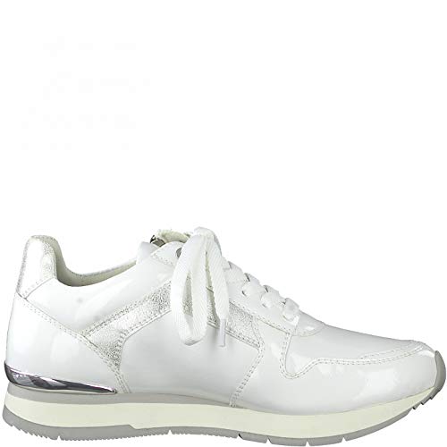 Tamaris Mujer Zapatillas, señora Bajo,Plantilla Desmontable,Zapato bajo,Zapato de Calle,Zapato con cordón,Ocio,White Patent,41 EU / 7.5 UK