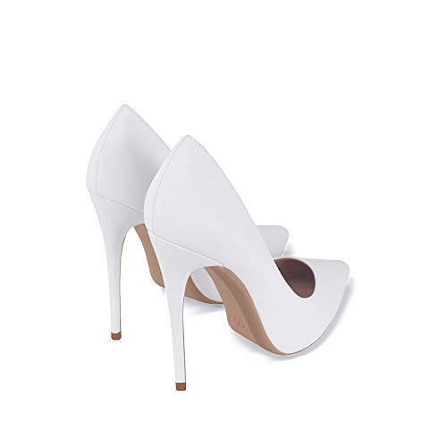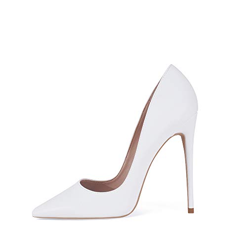 Zapatos de tacón para mujer, clásicos, tacones altos, sexi, con 12 cm de altura del tacón, piel lisa, talla 36-42 EU, color Blanco, talla 38 EU