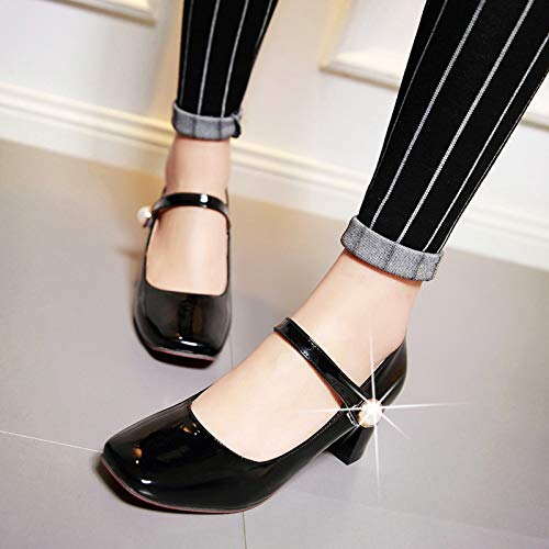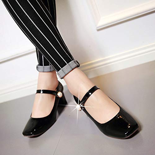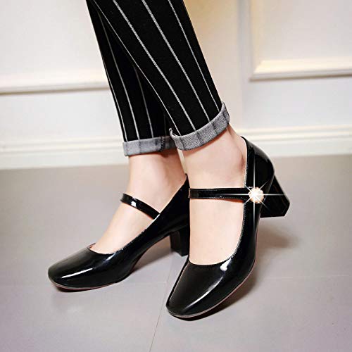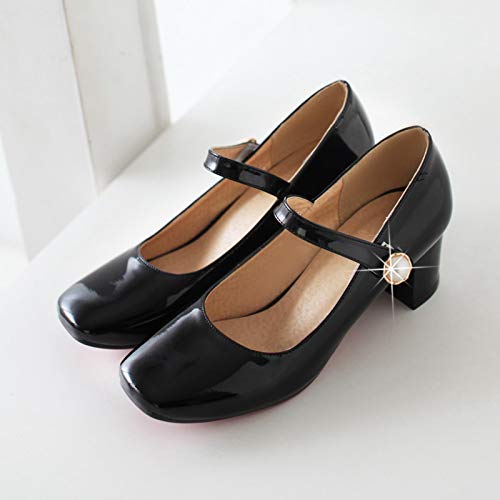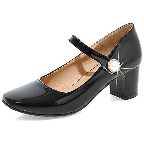 Garggi Mary Jane Mujer Punta Quadrada Elegante Correa De Tobillo Tacón Ancho Pump Bride Boda Vestido Tacón Medio Fiesta Zapatos Negro Talla 33 EU