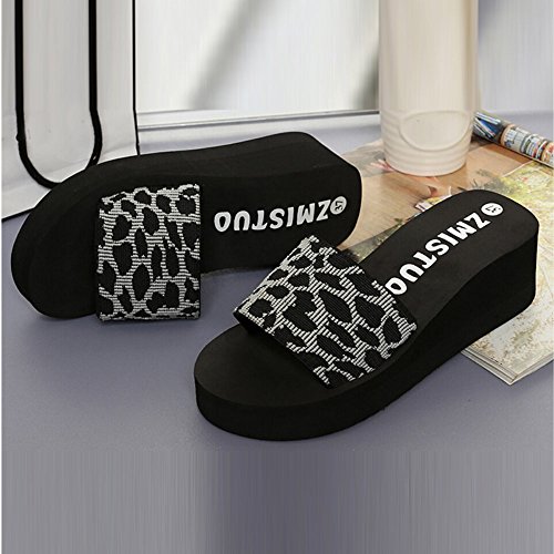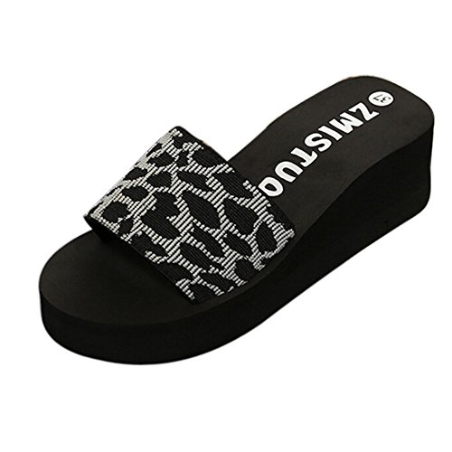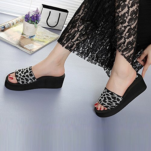 LANSKIRT Sandalias Mujer Tacon Medio Estampado Leopardo Zapatos Verano Zapatillas Cuña Playa Zapatillas Baño Plataforma