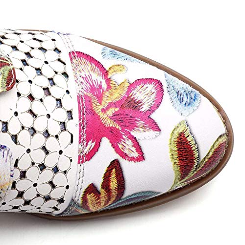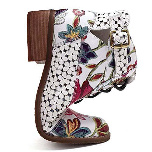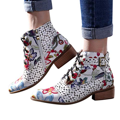 - POLP Botines de Tacón Bajo Invierno Vintage Cómodas Botas de Tacón Bajo con Cremallera Mujer Clásicas Zapatos de Tacón ancho Estampado de Flor Zapatilla alta Botas de cuero artificial