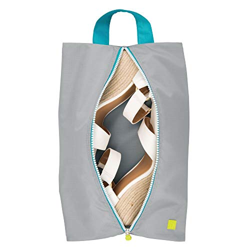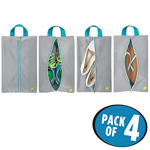 mDesign Juego de 4 bolsas para zapatos – Ligeras bolsas de viaje para guardar zapatos – Fundas con cremallera para deporte, productos de aseo o para la playa – gris/turquesa/blanco