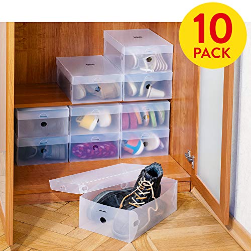 - ✅Cajas de zapatos de plástico, el conjunto de 10, durables, lavables, transparentes