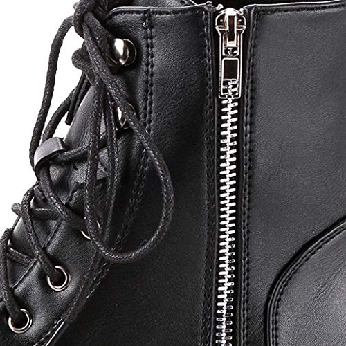MEIbax Moda Zapatos Invierno Botas de Nieve Mujer Militares de Unisex Adulto Cuero Impermeables Botines Forradas Calientes Combate con Punta Redonda Botine Plano con Ocio Cordones