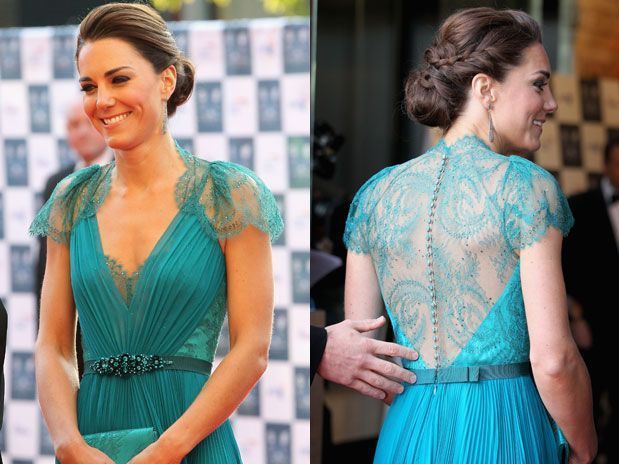 Catherinne Middleton con modelo turquesa de Jenny Packham y zapatos Jimmy Choo