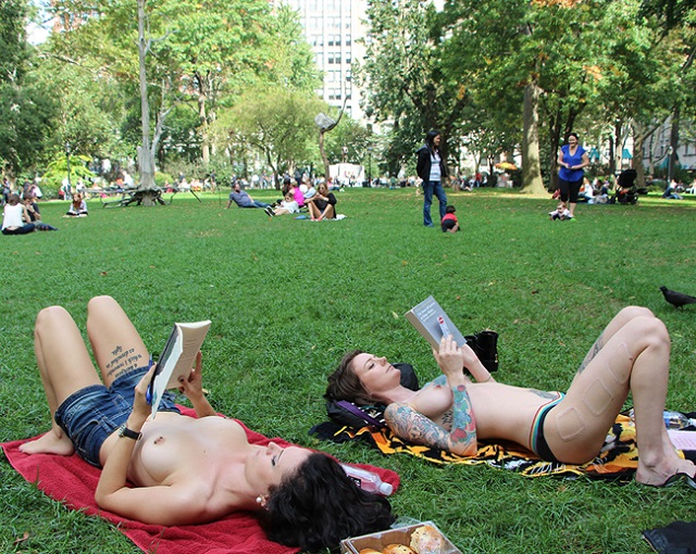 Chicas leyendo en topless en Nueva York