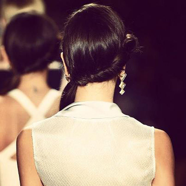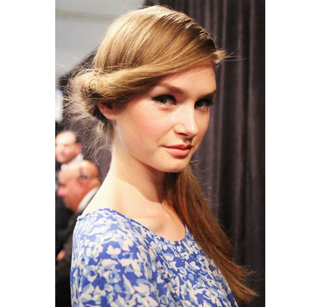 Con flequillos laterales, y coleta al lado contrario hacia donde va la melena, este peinado fue el escogido por Jenny Packham para que lo lucieran sus chicas en el desfile de su colección primavera 2013.