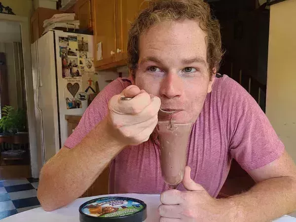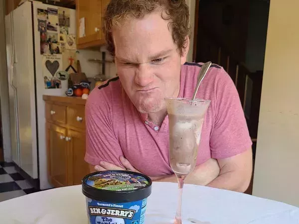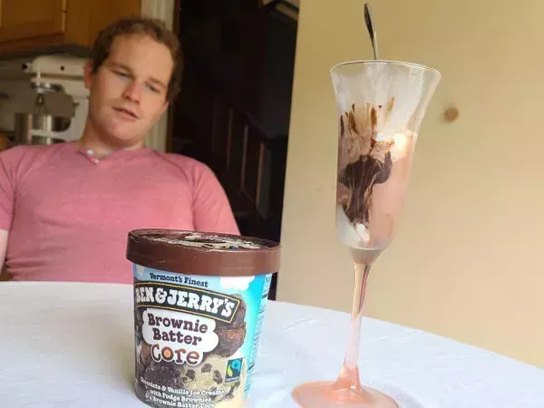 Lucien: No puedo comer Chunky Monkey porque soy alérgico a los frutos secos, así que voy a hacer que Clayton pruebe este solo.
