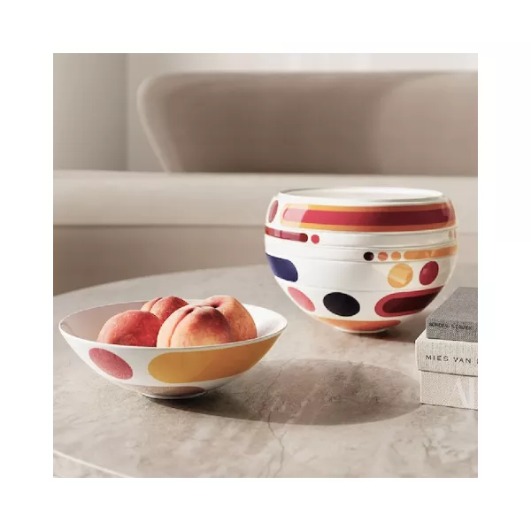La vajilla: Platos y utensilios con patrones geométricos audaces.