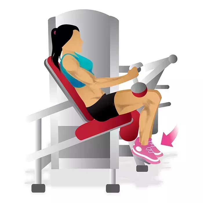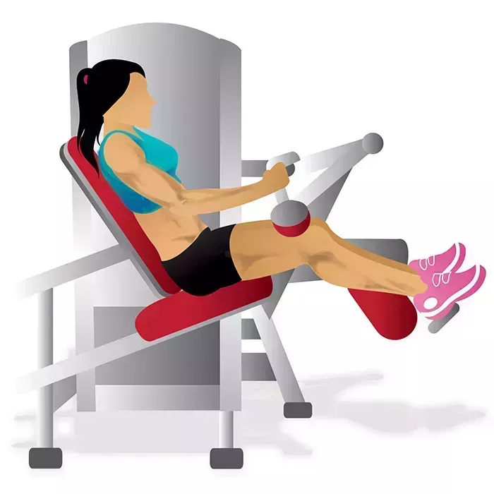 - Con los tobillos, tira de la almohadilla de la máquina hasta las nalgas. Exhale durante este movimiento.