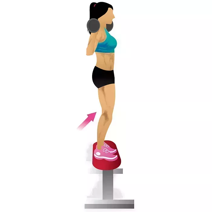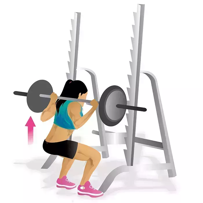 - Utiliza los talones para impulsarte hasta la posición inicial (Exhala durante este movimiento).