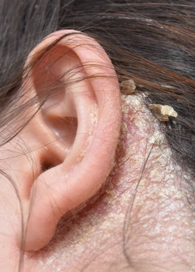 No suele considerarse eccema, pero la caspa del cuero cabelludo entra en esta categoría. Además de la cabeza, también puede encontrar las placas y escamas grasosas en las cejas, la nariz, el pecho o la espalda. Los médicos creen que en estos casos, una levadura que normalmente aparece en la piel crece en exceso en los aceites producidos por las glándulas, haciendo que el sistema inmunológico reaccione.