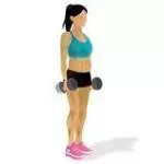 Posición inicial: Ponte de pie con el torso erguido y coge una mancuerna en cada mano.
