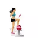 - Coloca el pie izquierdo en el banco plano y deja que el pie derecho se acerque lentamente hasta colocarlo al lado del pie izquierdo.