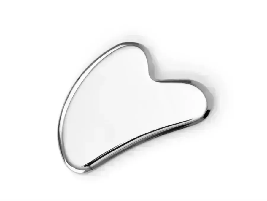 Una vez enjuagada la mascarilla, aplica el sérum facial de la noche y termina tu ritual de cuidado de la piel esculpiendo tu rostro con esta herramienta gua sha de acero inoxidable. Como el acero no es poroso, es ideal para la piel propensa al acné, ya que no atrapará ni propagará bacterias mientras disfrutas del tratamiento facial en casa.