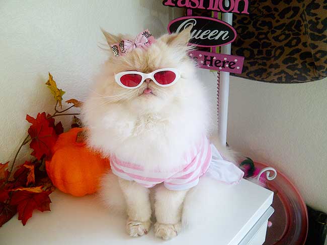 Desde llevar unas gafas con los cristales tintados de rosa, hasta ir disfrazada de pavo (sí, para Acción de Gracias). Por todo esto ha tenido que pasar la pobre gatita que con su lengua fuera posa en todas las fotos como si fuera una adolescente "haciéndose la locati".