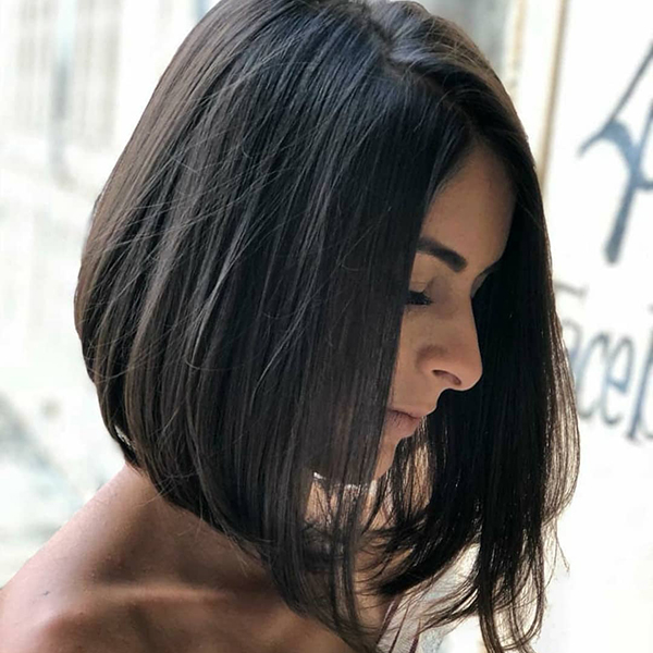 Un peinado clásico que aún se siente contemporáneo, el elegante bob de la línea A es una excelente opción para las mujeres que se destacan entre la multitud con su estilo pulido y poderoso. El acabado ultra liso y brillante del corte de pelo, combinado con los ángulos afilados, hacen una audaz declaración de estilo.