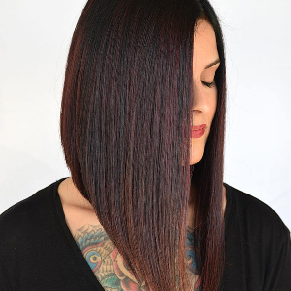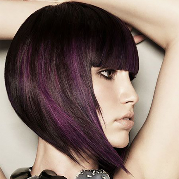 Los cortes en línea se basan en la creación de formas y ángulos, lo que los hace perfectos para añadir un toque de dramatismo a tu cabello. Un corte de línea A exagerado y afilado, junto con un flequillo romo, llama la atención y asegurará que todas las miradas estén puestas en ti. Añade un color atrevido como el púrpura o el rojo, y tendrás un corte de pelo espectacular.