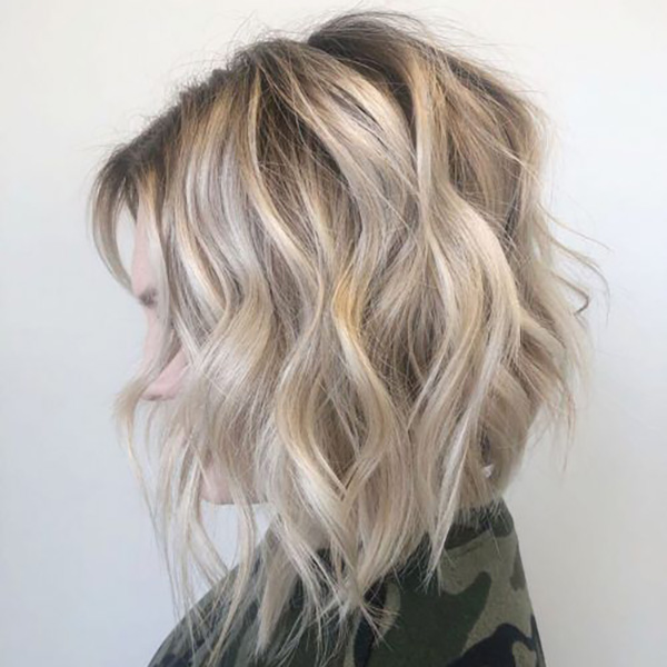Para un cabello con un estilo divertido y juvenil, prueba a añadir capas largas a un corte corto a-line, y luego a peinarlo con ondas sueltas. El contraste entre las secciones delanteras largas y onduladas y las secciones traseras cortas con textura hará que tu cabello se vea extra lindo y sin preocupaciones.