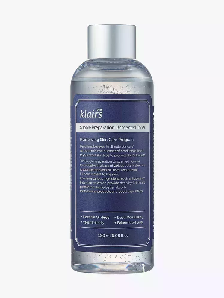 Por qué merece la pena: Después de someterte a procedimientos cosméticos, como tratamientos con láser e inyectables, o de sufrir una quemadura solar, utiliza el tónico sin perfume Supple Preparation de Klairs. Un trío calmante de cica, aloe y extracto de raíz de regaliz rescata la piel de inflamaciones, rojeces y molestias. Además, no contiene aceites esenciales para evitar que la fórmula exacerbe la sensibilidad.
