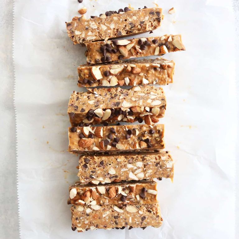 Mantequilla de cacahuete, chocolate negro, coco. ¿Necesito decir más sobre estas barras de desayuno saladas, crujientes y cremosas sin hornear? Creo que no.